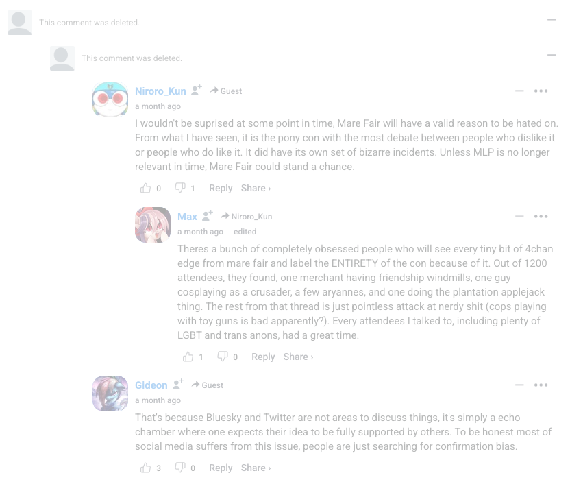 Another prolific outlet, Equestria Daily, got this opinion from one pony fan source: “It’s mostly just one guy now, Sethisto, who posts fluff like China getting their own version of the show so they are getting the best merch.” Equestria Daily’s Mare Fair coverage is censored of criticism (9/8/25). It amounts to bland notices like “Mare Fair largely follows board culture over on 4chan’s /mlp/” (1/17/24), and short blurbs of congratulation: